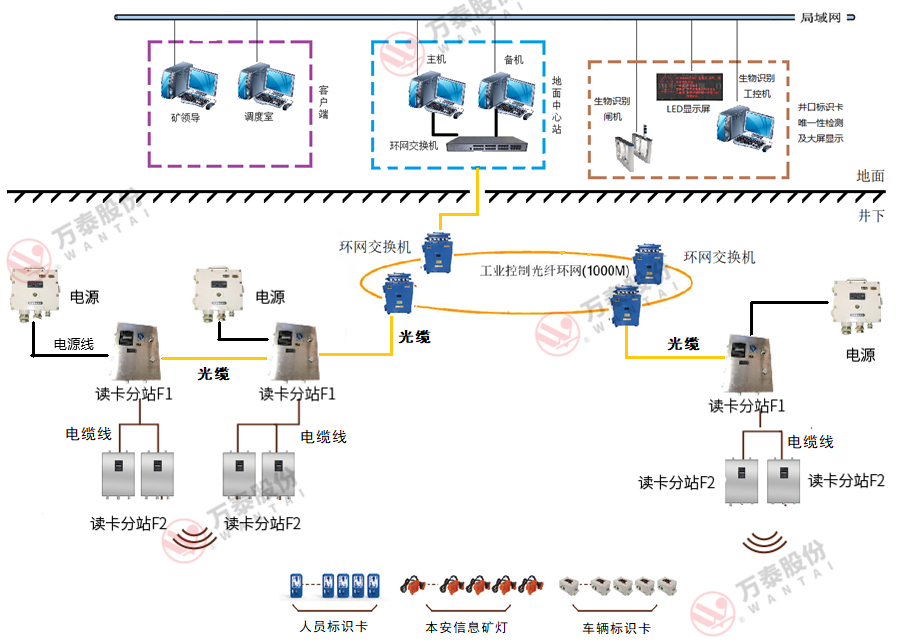 KJ1831J煤礦井下人員精確定位系統(tǒng)是淮南萬泰電子股份有限公司研發(fā)的基于UWB技術,采用TOF+TDOA模式算法,通過厘米級精確定位、遠距離覆蓋、數據建模,實現煤礦井下人、車、物高精度實時定位管理和超前預警管理的新一代智能礦山精確定位系統(tǒng)。整個系統(tǒng)采用B/S架構,數據采集軟件,WEB軟件,數據庫都在服務器上運行,遠程客戶端只需要通過瀏覽器即可訪問定位系統(tǒng)。手機上通過App軟件訪問定位系統(tǒng)。