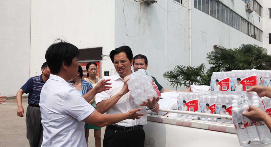 7月17日訊,上午10時許,潘集區(qū)委副書記劉慶元,區(qū)工會主席區(qū)人社局局長程曉玲一行來到萬泰電子股份有限公司,親切看望和慰問了廣大生產(chǎn)一線的員工,送來西瓜,礦泉水和白糖等消暑降溫物品并發(fā)表了重要講話。萬泰的職工和車間代表列隊歡迎。