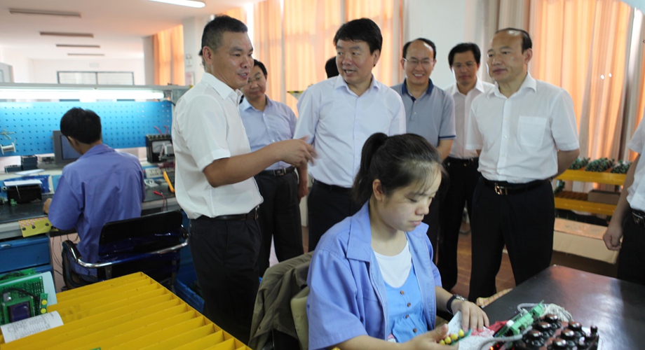 7月23日上午,市委副書記萬以學(xué)在市委常委蔣昌盛、潘集區(qū)區(qū)委副書記劉慶元的陪同下蒞臨我公司參觀調(diào)研。萬泰電子董事長余子先攜公司相關(guān)領(lǐng)導(dǎo)熱情接待,并表示歡迎。隨后,萬書記一行在董事長余子先的陪同下先后參觀了我公司的幾個生產(chǎn)車間。親切慰問奮戰(zhàn)在生產(chǎn)一線的廣大員工。董事長向各位領(lǐng)導(dǎo)匯報萬泰電子今年以來的發(fā)展和科技創(chuàng)新等情況。并對公司研發(fā)的新的礦用防爆產(chǎn)品做了詳細(xì)的介紹。