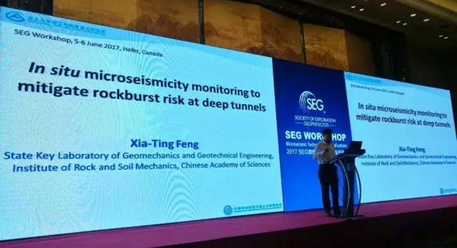 下午,中科院武漢巖土力學(xué)研究所,巖土力學(xué)與工程國家重點實驗室主任馮夏庭,進(jìn)行了最后一個專題的第一個邀請報告,報告講述了通過原位微震監(jiān)測減輕深層隧道巖爆風(fēng)險的研究內(nèi)容。