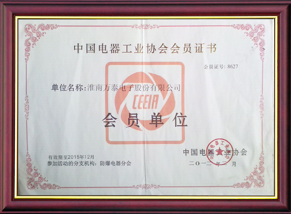 2012年2月中國電器工業(yè)協(xié)會會員證書