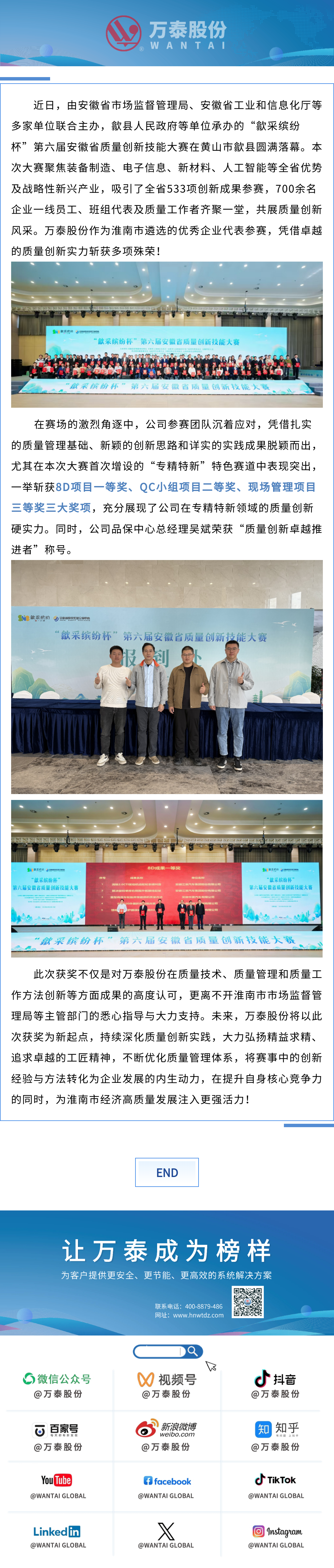 捷報(bào)頻傳!萬泰股份在第六屆安徽省質(zhì)量創(chuàng)新技能大賽中斬獲多項(xiàng)殊榮