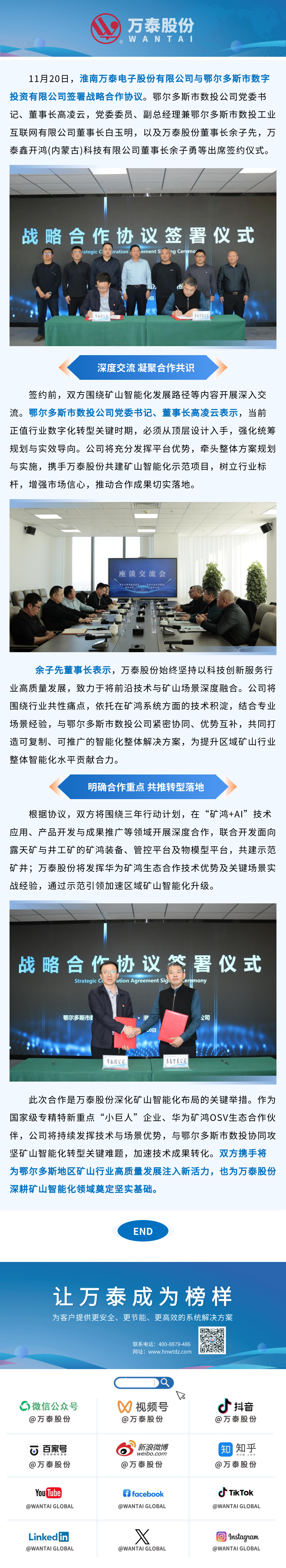 萬泰股份與鄂爾多斯市數(shù)投公司簽署戰(zhàn)略合作協(xié)議,以礦鴻技術(shù)與場景優(yōu)勢助推礦山智能化升級