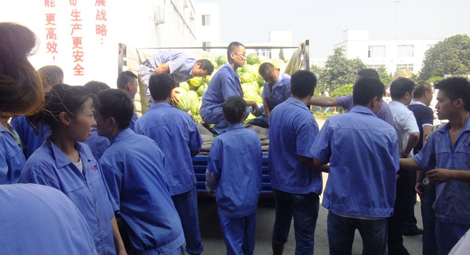 7月23日上午,淮南市副市長、潘集區(qū)區(qū)委書記蔡宜驊和潘集區(qū)委副書記潘奇志一行慰問萬泰職工并發(fā)放防暑降溫用品,把清涼和關(guān)懷送到萬泰一線工人手中。總工會負責(zé)同志陪同。