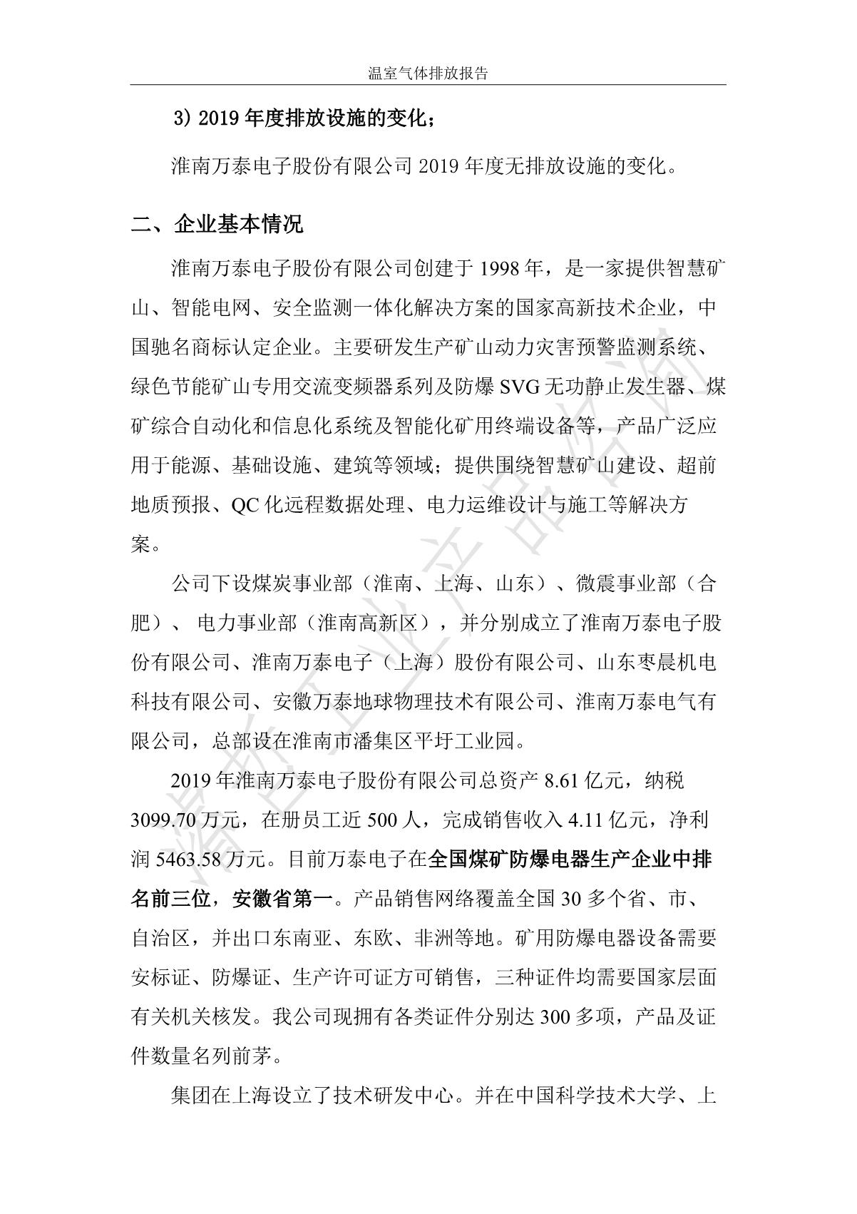 淮南萬(wàn)泰電子股份有限公司溫室氣體排放報(bào)告